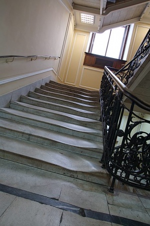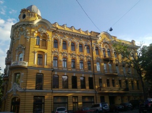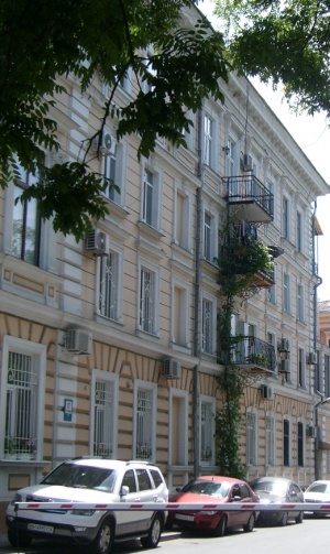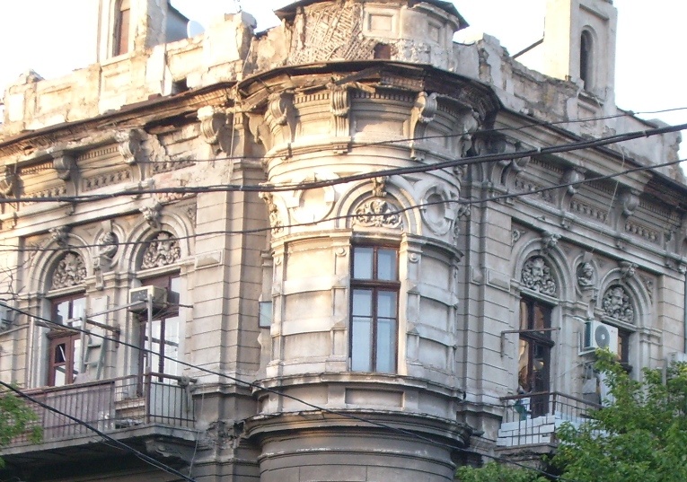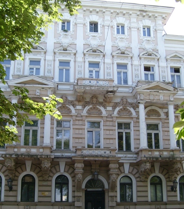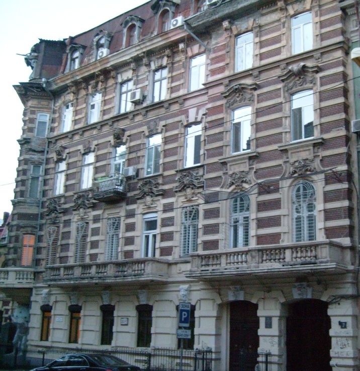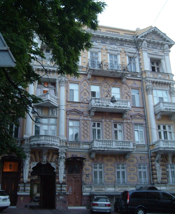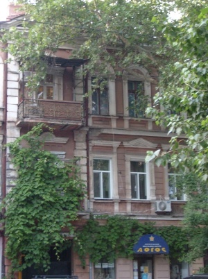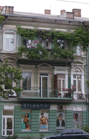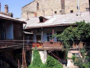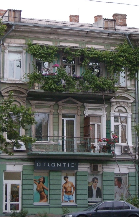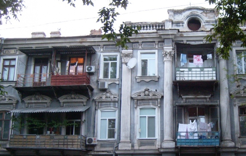 Я помню дом тетки недалеко от привоза. Дом каменный капитальный двухэтажный кирпичный, квадратиком, внутри дворик и деревянные лестницы и обвязка деревянная и с нее входы в квартиры... Типа такого...