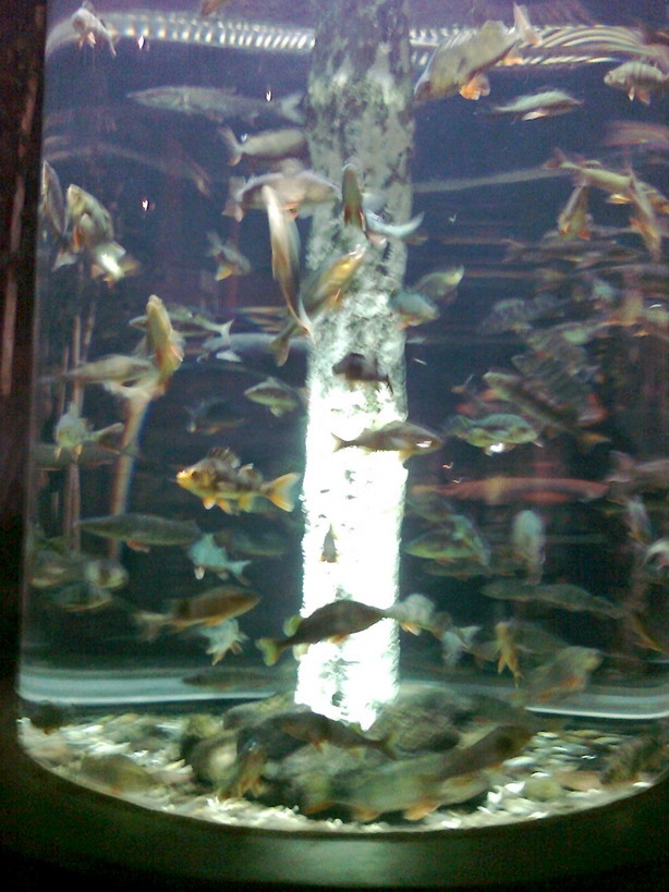 а еще там был скат, который так резво нарезал круги по аквариуму, что брызги от его выкрутасов окатывали близкостоящих доверчивых граждан :)))