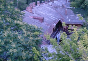 А похожие дворы мы видели с Тёщиного моста, но сквозь деревья очень-очень смутно, а вниз не спускались.
