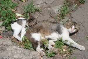 На самом деле, снимать их трудно. Они совершенно отказываются позировать или подворачиваются ровно тогда, когда свободны только зубы... но при этом они практически везде: лежат на пледах на диванах летних веранд кафе, ходят по своим важным делам на улицах, в переулках и дворах, возникают вдруг на пути из кустов... трудно снимать ещё и потому, что стоит остановиться и посмотреть, он мчится к тебе: "Посмотри, какой я замечательный! У тебя точно такого нет!".