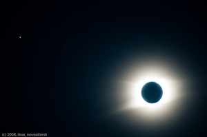 А полной фазы у тебя нет вместе с Меркурием и Венерой?.. :-)Для того шоп на фото был виден Меркурий надо или половину объектива, там где Солнце, закрывать сфетофильтром, или снимать через телескоп не захватывая Солнце (даже полностью закрытое Луной).
