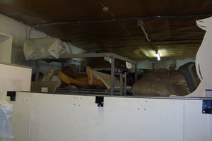 Манекеном. А пластмассовую конкурентку ты запихала на полку и завалила узлами. Но пятки ейные видно.