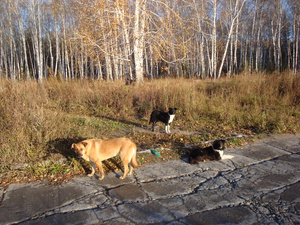 Я не слышала про такие случаи, когда нападали на людей именно эти собаки. Ничего не могу сказать. ...Все сотрудники, когда идут с работы на служебный, видят этих собак, всегда их чем-нибудь угощают.. А собаки их провожают.. Собак осталось три...
