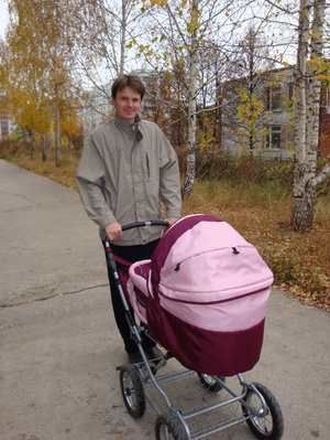 надож. такой счастливый. иксренне счастливое лицо отца с коляской.