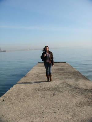 Девушка, идущая по пирсу?