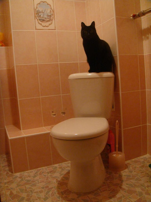 Эта картинка, не такая конечно, впечатляющая как твоя... Просто удивилась сегодня... Увидев собственного кота (брюнета), задумчиво сидящим на бачке унитаза...
