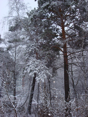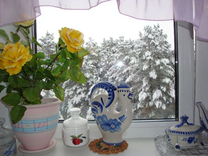А у меня класный вид из окна дачи, там все снегом засыпано, все мои елки, сосны, и печка так уютно потрескивает дровами, а мы с сынишкой греемся возле нее, и сушим рукавички и пьем чай с сушками и сгущенкой и такие абсолютно счастливые, что просто нет таких больше не свете. А фотки нет, потому что это не передать - это надо почувствовать)