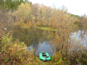 Тогда там от церкви идти еще минут тридцать, но не по той дороге, а свернуть направо - где поваленные сосны лежат, а потом по тропе опять направо.