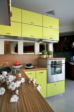 Я насчёт кухни так мыслю. Или дерево (под дерево), или совсем нейтральный цвет, которого просто не замечаешь. Бежевый, охра, как-то так.
