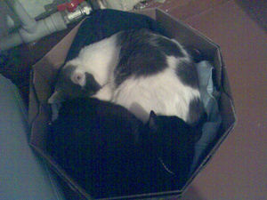 Погода меняется - мои две заразы тоже двумя скрутками лежат. Сколько ни кидалась в них карандашами и ластиком - лежат, как прибитые