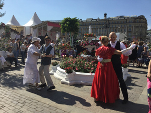 Репортаж из центра. Район Патриарших визуально стал совсем Европой, ресторанчики в каждом первом доме. Окна настежь, ступени и тротуары рядом уставлены столиками. На Охотном ряду рояль. Белый. Как и положено, в кустах. И обучение танцам. Народ старательно и тщательно танцует, чем старше танцор, тем профессиональней па. Всюду цветочки и реконструкция тротуаров/проезжей части.
