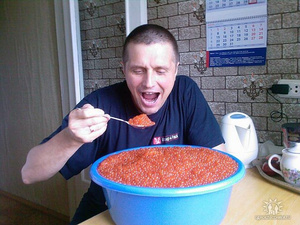вот именно ТАК мы ели икру на Курилах и Сахалине. Этот дядька - мой земляк, просто фотку дёрнула с одноклассников. Эххх, детство золотое) вернее, икряное! )