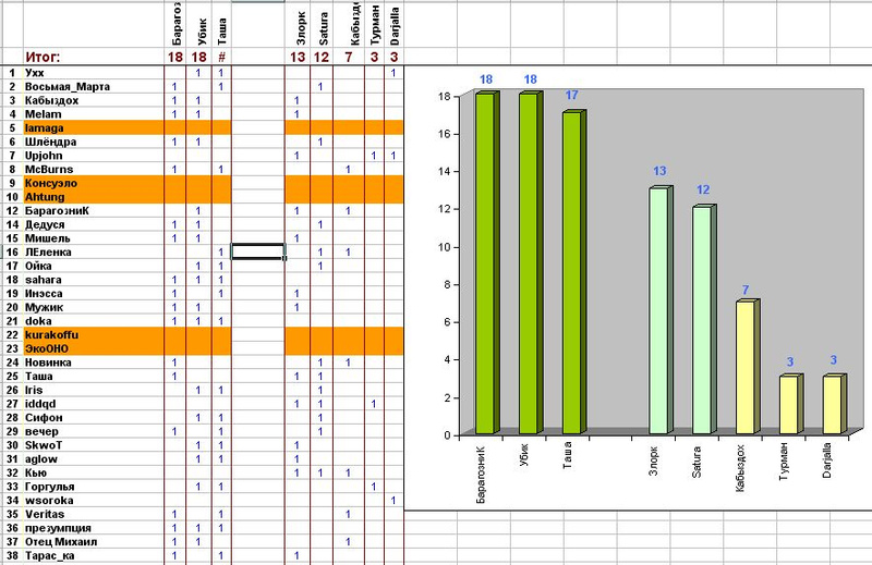 Да я, собственно, из-за Горгульи. Я думала, она прикалывается, а она сказала, что у нее есть основания голосовать за Турман. Вот я и спросила - может, я чего не вижу? Не понимаю?