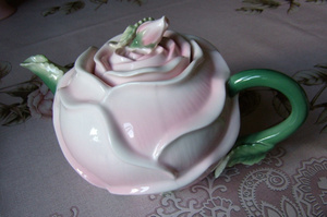 Это к тому, что не всегда получается вписать в интерьер.Ну, одновременно она купила новую скатерть на стол, тоже такую серовато-розовую с розами, и ещё кувшинчик под пару :-)