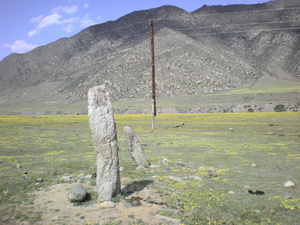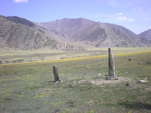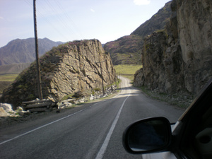 На въезде на Чике-Таман есть точно такой бом (прорубленный проезд в скале). А тот, что на фотке) (вот он еще) километрах в 60-70 от Купчегеня, уже после вот этих древних стелл.