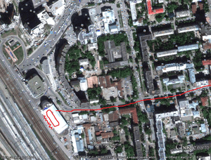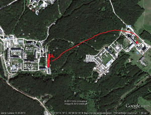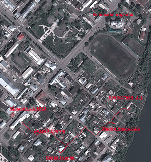 путь от дома до школы (крупнее сделать не вмещается), вверх от кольца дорога на старый мост через Енисей