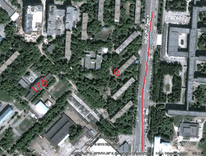 2. 4 этажка, куда переехали с родителями когда учился в 9-10 классе и путь стрелкой до школы №1 (3 на карте) которую и закончил.