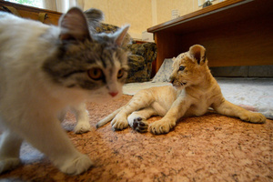 А где самая чудесная фотка, в которой кошка-мама хвост на лигрёнка сверху сложила на кресле?