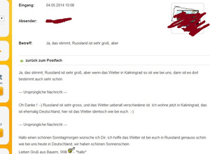 Я такая распластываюсь:" О спасибо ! Россия очень большая, и погода везде разнообразная. Я сейчас живу в Калининграде, это бывшая Германия, и погода здесь такая же как у вас."