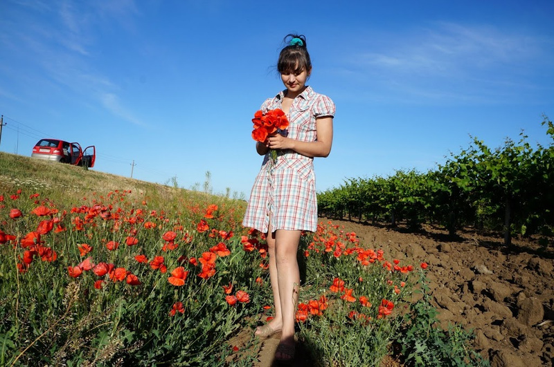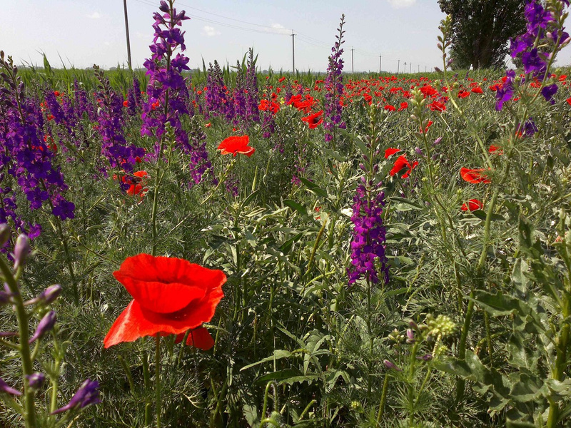 У меня, кажется, нету фотографии полей целиковых, так как мы все время мимо проезжали. Но вот быстро нашлись фотографии на обочине.)))) Действительно на обочине виноградника, частое явление. Я там в один день прям забастовала, типа давайте остановимся. Но маков было уже немного, отцветали, и колокольчики (которые не колокольчики а забыла кто) уже совсем отцвели, а ведь было очень красиво вместе (у тети одну фотку стащила).