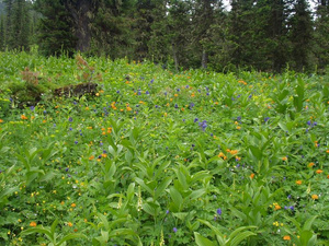 В соседней кемеровской области до сих пор есть целые поляны огоньков.А представьте такую картину. Вы стоите среди жарков и повсюду, насколько хватает глаз - оранжевое поле... без конца и края... Это захватывающие зрелище и ощущение. А здесь я рада каждой маленькой полянке, каждому кустику этих цветов. Просто несравнимо мало их у нас.