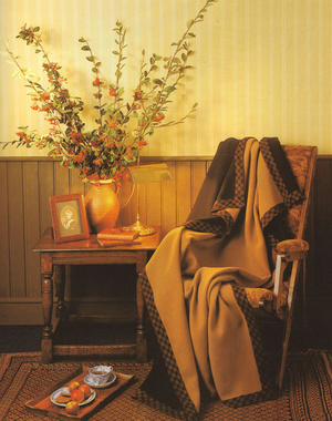 *глядя на камин, кресло и плед*