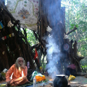 Сидит Баба под баньяном и медитирует. А раньше здесь с ним сидели битлы