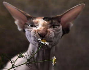 Кошечка цветочек нюхает !!! ))))))))))) См. оригинал !