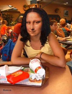 Знаешь, я даже сожрала бургерУлыбка Джоконды разгадана - она была профессиональной кидальщицей! Работала исключительно в МакДональдсах))