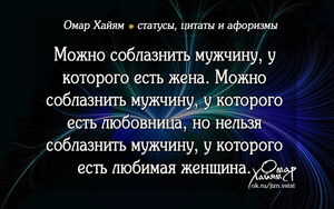 можно соблазнить мужчину у которого есть жена, можно соблазнить мужчину у которого есть любовница, но нельзя соблазнить мужчину у которого есть любимая женщина (о.хайям)