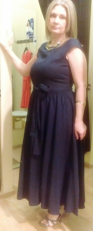 Прошу совета. Первый раз меряю эти длинные платья в пол. Мне нравятся оба. Может, я не права? Торчащую лямочку уберу, седину закрашу)) как по цвету, самое важное. И по обуви тоже жду советов - с чем это можно надеть?