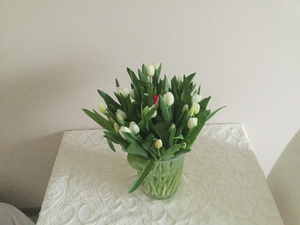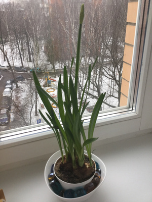 Подснежник делает вид, что не понимает, чего от него ждут, сидит, набухнув бутоном, мизантроп. Зато образовались правильные тюльпаны.