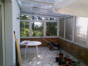 Одно название, просто застеклённая веранда, но на южной стороне, поэтому там всегда температура выше на 4 градуса, чем за бортом