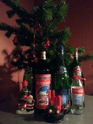 у меня в этом году все из совершенно подножных материалов: пустые бутылки, коробочки из-под косметики, флакончики из-под т.воды и т.д.