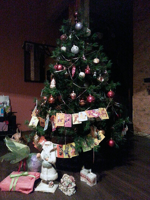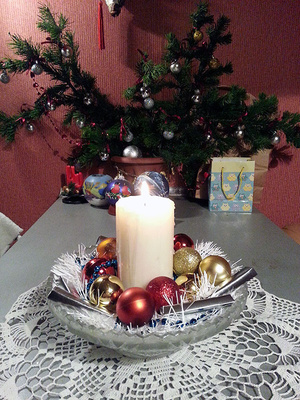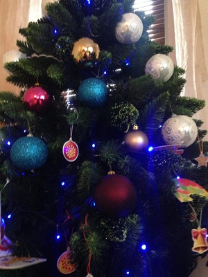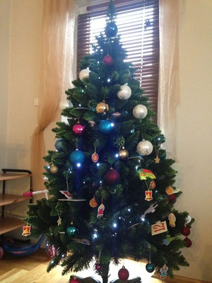 Спасибо! Я обычно делаю двухцветную, серебро с бирюзой, но в этом году хотелось красок для малыша - Ташика, а то болеет беспрерывно. Вроде, ей понравилось, сказала, что нынче елка открыточная.:)