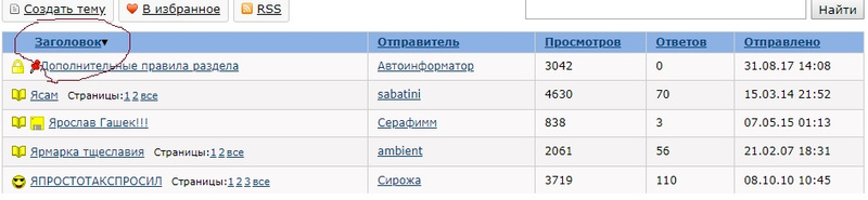 Это верно. Если нажимать на заголовки колонок "Заголовок", "Отправитель", "Просмотров", "Ответов", "Отправлено", то происходит сортировка по этому признаку (количеству, дате, алфавиту) в обе стороны (по возрастанию и убыванию). Проблема в том, что Шелест второй раз так обламывается - чего, видимо, раньше не случалось вааще.