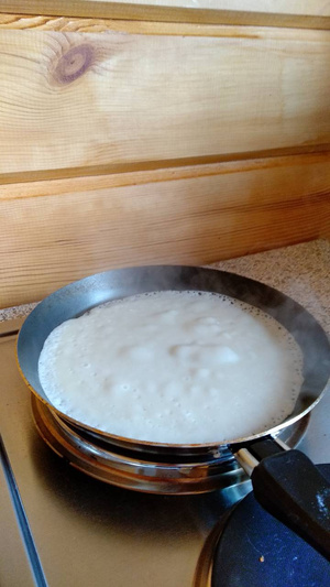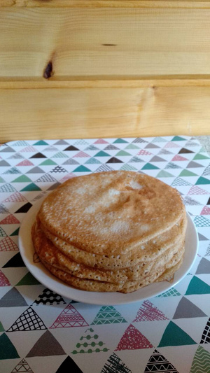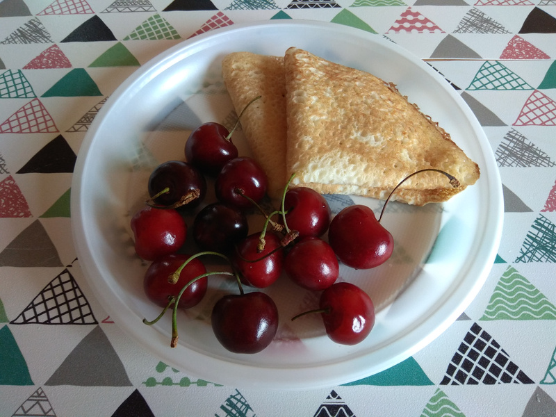 Несколько воскресений на завтрак за городом -- блинчики, в прошедшее пекла по новому для меня рецепту на кефире с кипятком. Толстенькие получились