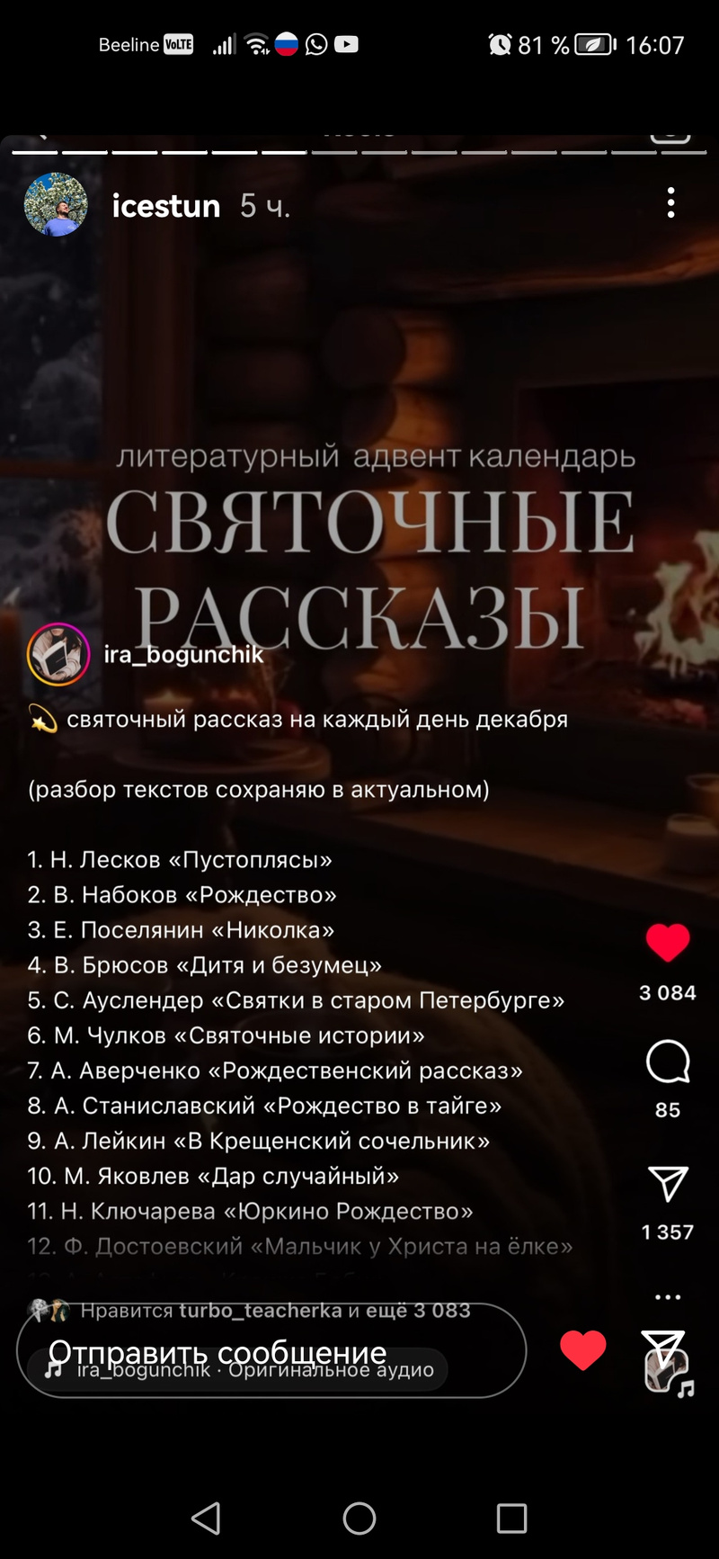 На всю жизнь впишется в подкорку и на память, как мы читали рождественские рассказы.