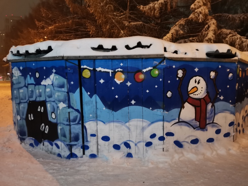 Начала накатывать снежная зима и художник, автор граффити, Константин Киселев взялся бескорыстно за дело.