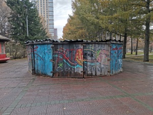 Много лет мозолила глаза всем. И пожилые посетители ворчали. У них место встречи для душевных бесед и начала компанейских променадов от красного домика фонтана.