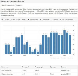 То есть карманы все набивают исключительно по причине неуборке снега в Новосибирске? Настолько много денег на это выделено или так плохо контролируется?Индекс коррупции(Оценка страны) — это воспринимаемый уровень коррупции в государственном секторе по шкале от 0 до 100, где 0 означает высокий уровень коррупции, а 100 — очень чистый.