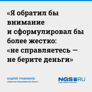 — Опыт показывает, что сельские территории с дополнительными объемами справляются, но городские округа, например, Искитим и Новосибирск нас подводят. Я обратил бы внимание и сформулировал бы более жестко: «не справляетесь — не берите деньги». Новосибирск в этом году получит дополнительное финансирование, почти 1 миллиард 200 миллионов, никаких отговорок, что средства доведены поздно и работы вовремя сделать не успевают подрядчики, не принимаются, — сказал Андрей Травников.