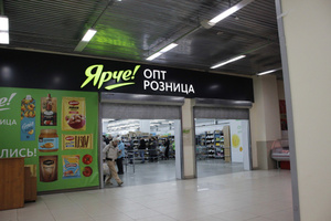 Все привыкли к тому, что «Ярче!» - это такие компактные магазинчики, куда можно заскочить по дороге. Между тем у сети есть торговая точка необычного для неё мелокооптового формата. Расположена она в Томске, в безымянном ТЦ вдали от центра (Пушкина, 65/2), где компанию ему составляют «Чижик» и «Бристоль».