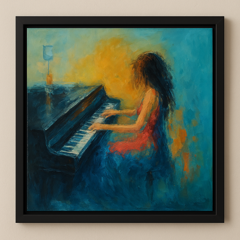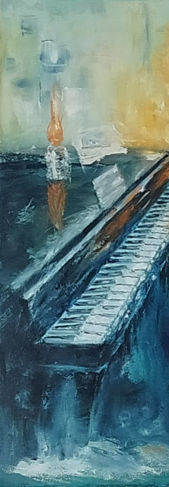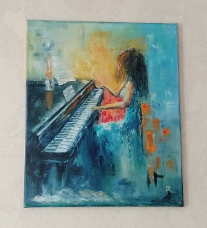 Картина красивая, бросается в глаза наспех нарисованная клавиатура фортепиано.