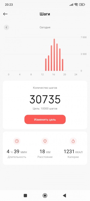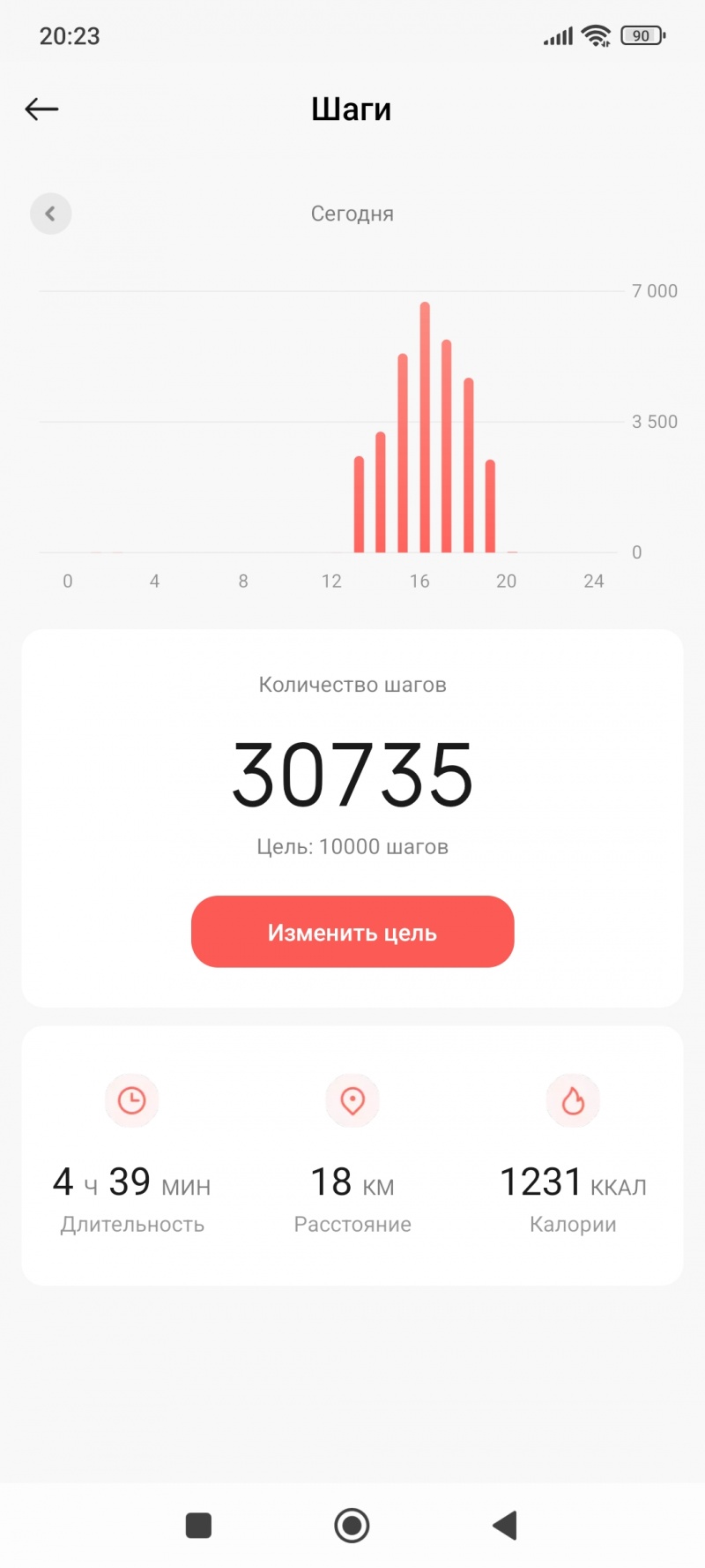 Впечатляет расстояние 18 км, но над скоростью надо ещё поработать.На скрине в 16 часов пройдено 7 км. Это не ходьба, а уже бег. Куда ещё работать? Только если убиться.