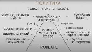 Нет, как раз в этом. Интермедиарная(публичная) сфера самая важная часть политики, это неизбежная сфера для общества, которое хочет стать демократическим. Она по своей сути - сфера посредник между обычной жизнью граждан и политическими институциями. А также является важным элиментом механизма безопасности - "Система сдержек и противовесов" контролируя и предотвращая злоупотребления любой из ветвей власти. Без этой сферы, политика превращается в чисто технические, внешние, навязываемые структуры.