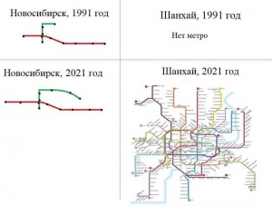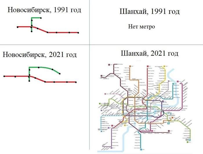 Еще есть чудная картинка с разветвленным новосибирским метро, уходящим в дебри Академгородка, под интригующим названием "Если хочешь заставить зарыдать новосибирца", или что-то в этом духе.:)) Ну а китайцы, че, молодцы, кто бы спорил.