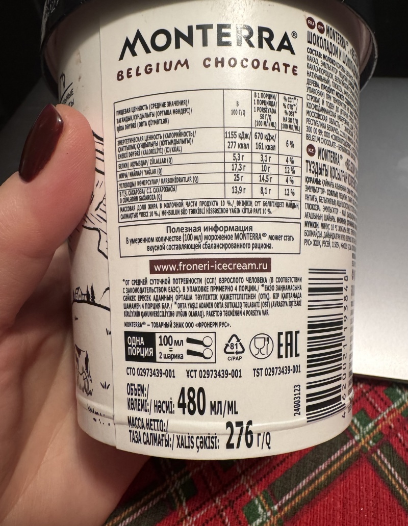 а я обожрамшись мороженого) 480 гр., шоколадного. Завтра расплата на велике)наврала) но все равно 276 это много, два шарика всего надо было съесть)) зато душу отвела)