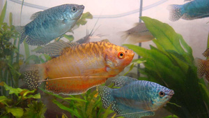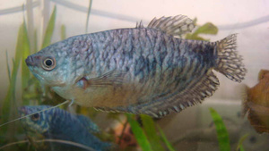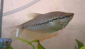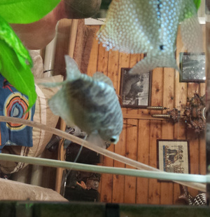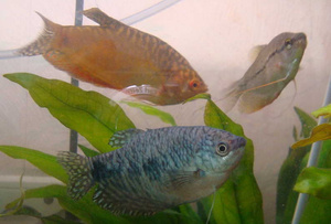 Гурами прикольный. Думаю, в большой посадить пару таких. Только где-то читала пужалки, что жемчужные очень сложные в уходе. У вас же мраморный?