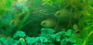 Чернополосых можно держать со скаляриями, но только если чернополосики однополые. Я люблю этих чернополосиков они заботливые родители, наблюдать за ними можно часами. Перекладывают камни, выкапывают что то... нерест у них интересный но в это время очень агрессивны. Я своих цихлид держу парами, место им маловато бывают стычки. Нерестятся регулярно сами по себе, ухаживают за мальками. Они живут в акве с красавцами, так что когда ченополосые перестают ухаживать за молодью, они куда то деваются